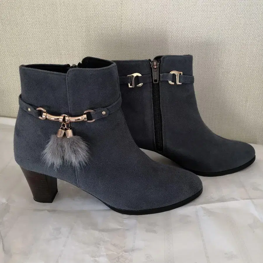 그레이 퍼 달린 스웨이드 부티