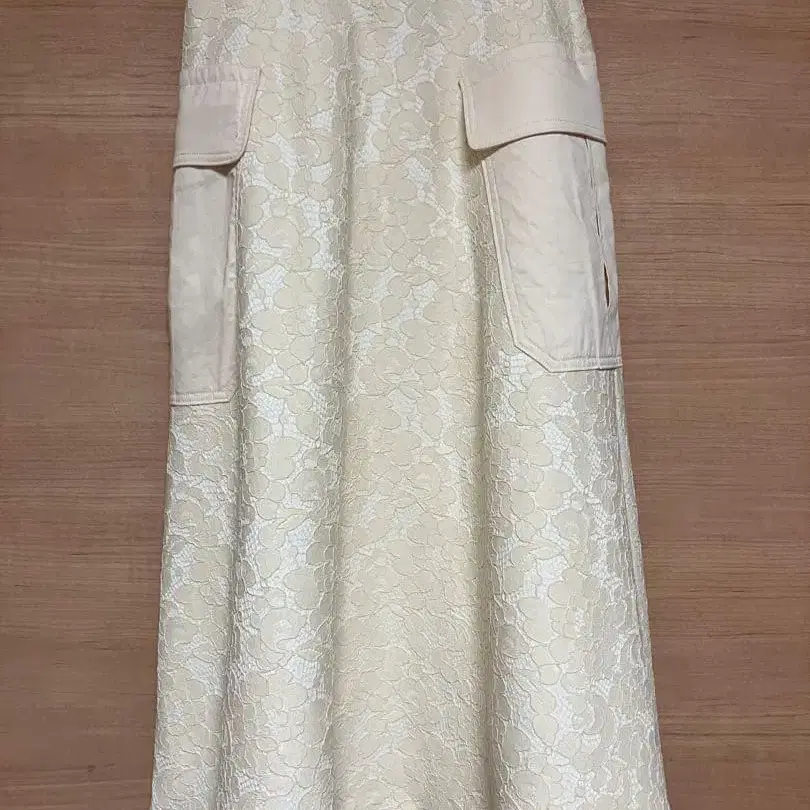 MERCURYDUO 아이보리색 레이스 본딩 롱 스커트