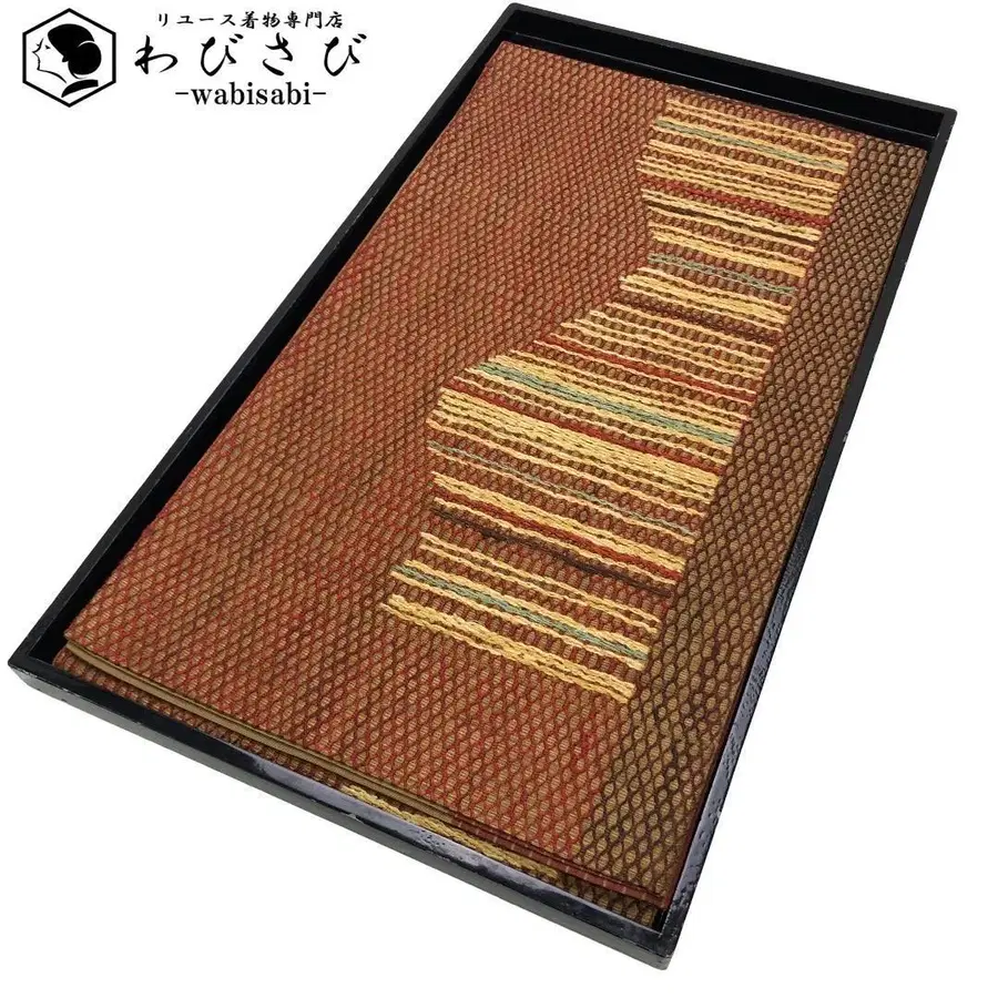 후쿠로 오비 입체적인 직조 무늬 적갈색 O-5864