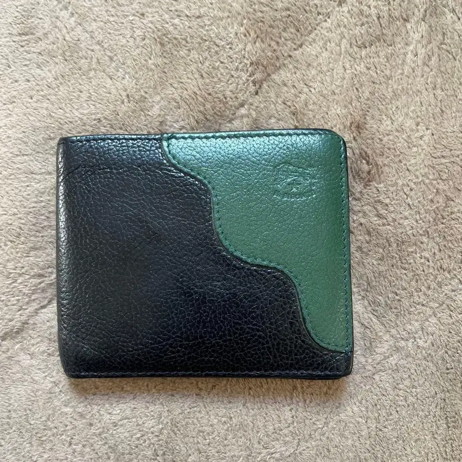 이단 접이식 지갑 블랙과 그린 가죽