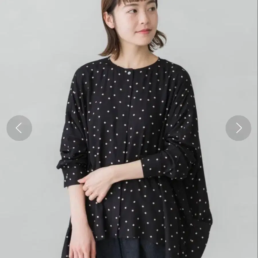새상품급 카구레 Kagure 도트 와이드 셔츠 긴팔 블랙 FREE