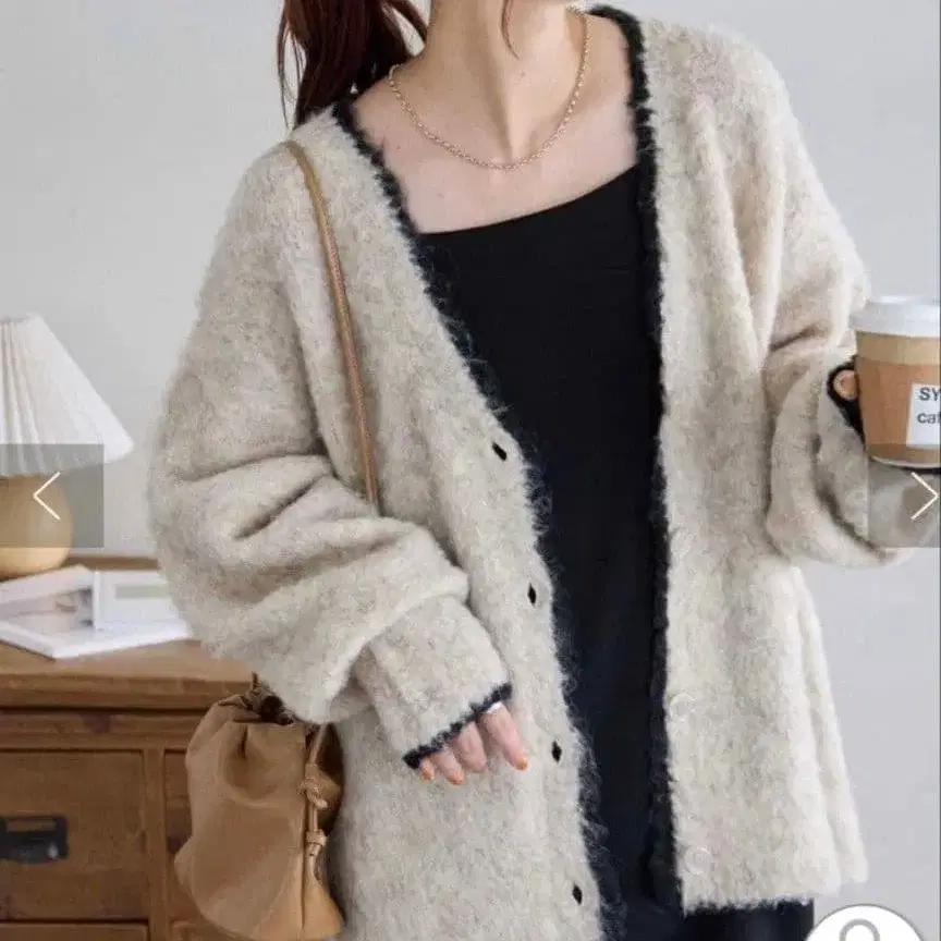 DISCOAT [WEB 한정판] MIX 부클레 샤기 배색 V넥 가디건
