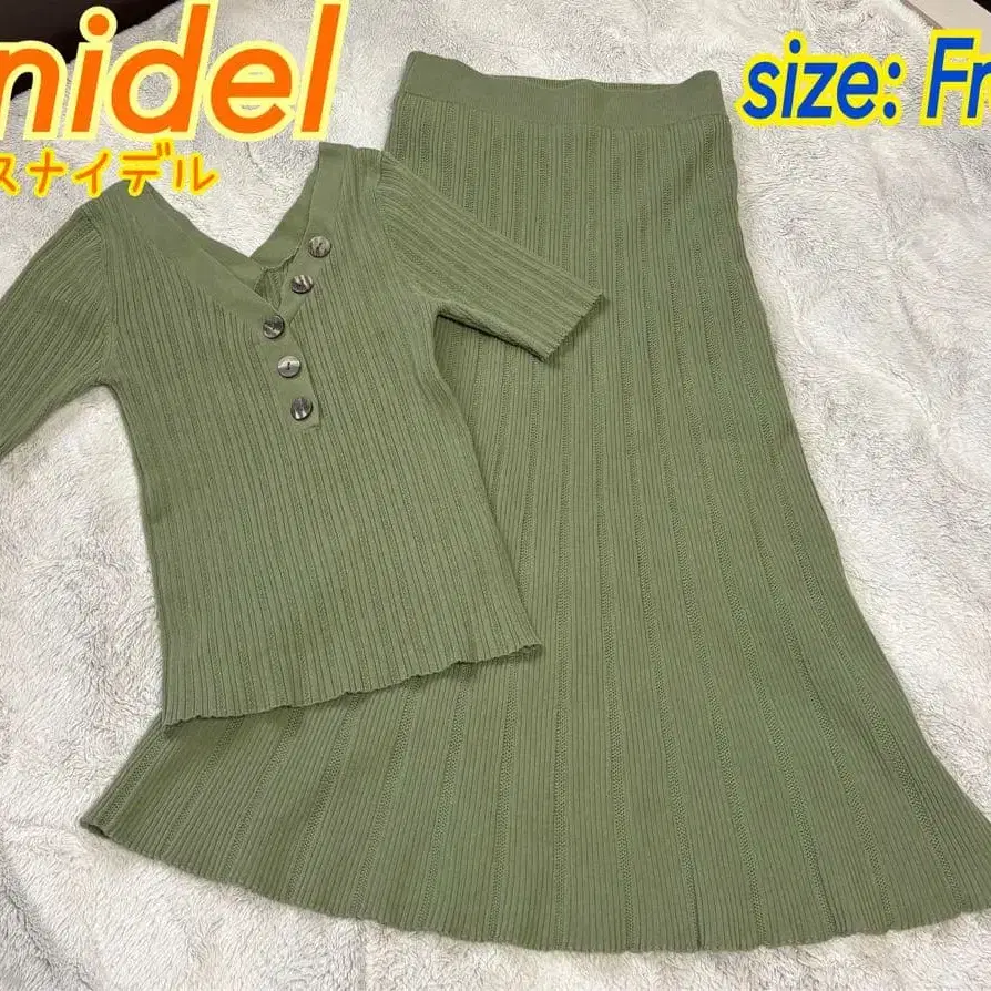 방문해 주셔서 감사합니다. 몇 번만 착용한 새상품급입니다. 스나이델 리브 니트 그린 셋업 ♡ 하프 슬리브 버튼 니트 풀오버 품번: SWNT193319 컬러: GRN 7,000엔+tax 앞뒤 V넥이 데콜테 라인과 등을 아름답게 보여주는 리브 니트 팔꿈치 위까지 오는 5부 소매를 채용하여, 팔뚝도 날씬하게 보이면서 환절기에도 활용하기 좋게 완성했습니다. 부드럽게 몸에 따라 유연한 실루엣을 연출하는 리브 니트는, 플레어 스커트나 매니시한 팬츠 등 상의를 넣어 입는 스타일링에 활용하기 좋은 아이템입니다. ♡ 프릴 미들 니트 스커트 길이 78cm 품번: SWNS193322 컬러: GRN 9,000엔+tax 밑단으로 갈수록 살짝 퍼지는 실루엣으로, 부드럽고 유연한 여성스러운 라인을 표현했습니다. T셔츠를 안에 입어 캐주얼하게 연출하거나, 오버 사이즈 상의를 맞춰 입는 것도 추천합니다!