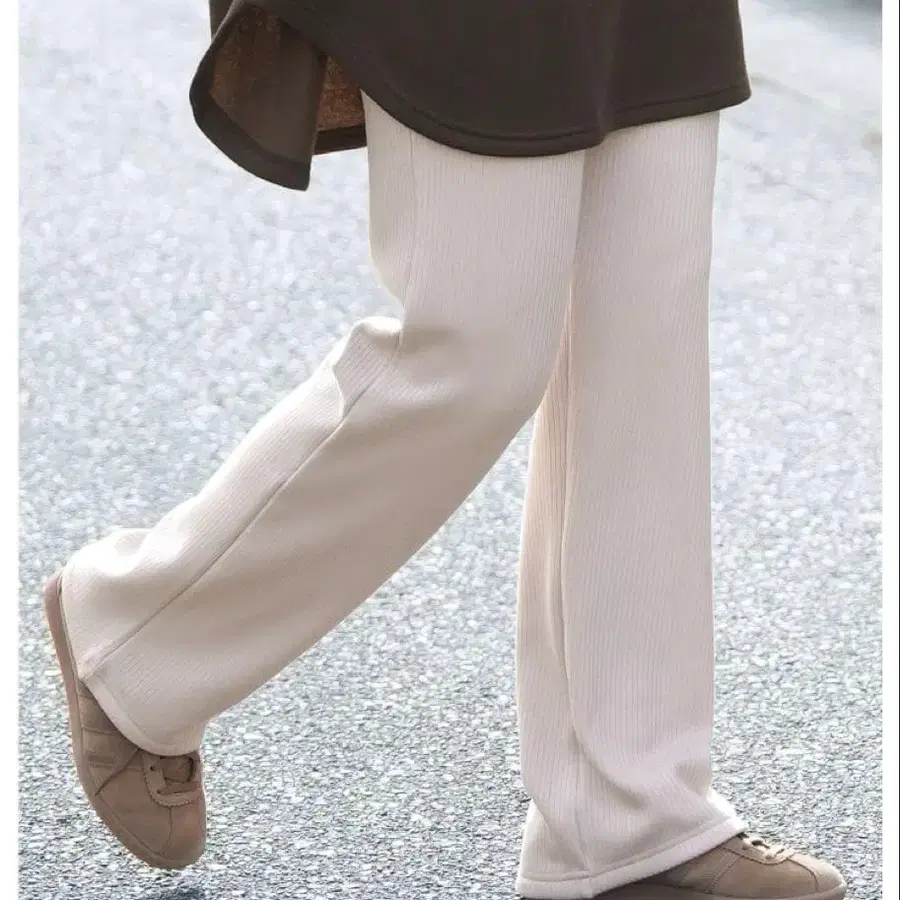 따뜻함! 아름다운 실루엣 속기모 세미 와이드 리브 팬츠