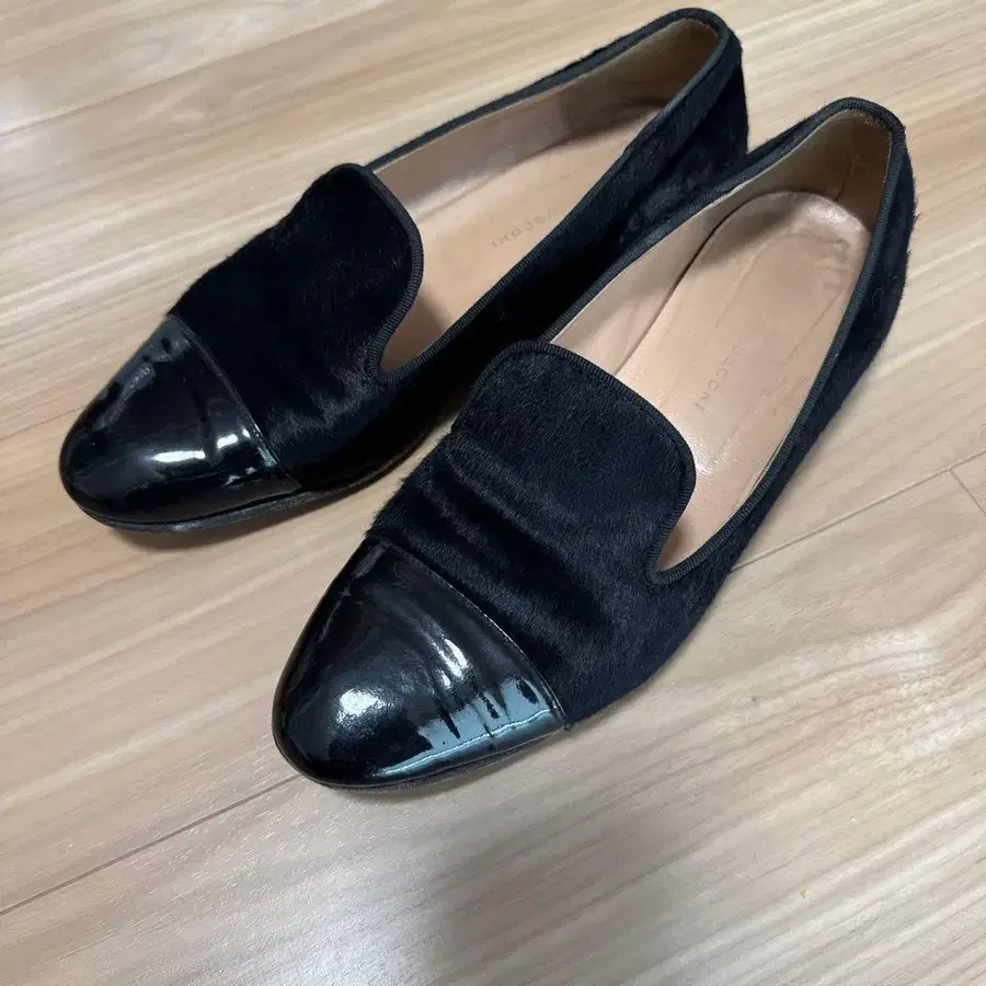 파비오 루스코니 블랙 포니 헤어 패턴트 레더 로퍼