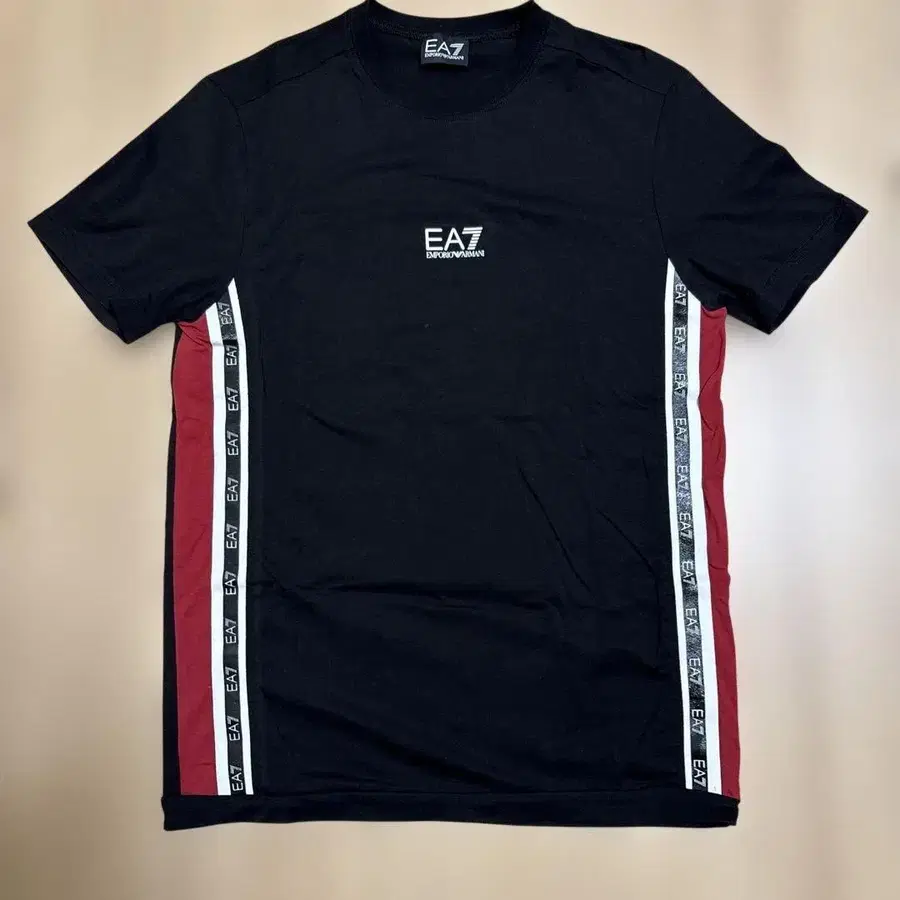 EA7 사이드 스트라이프 티셔츠 블랙/레드