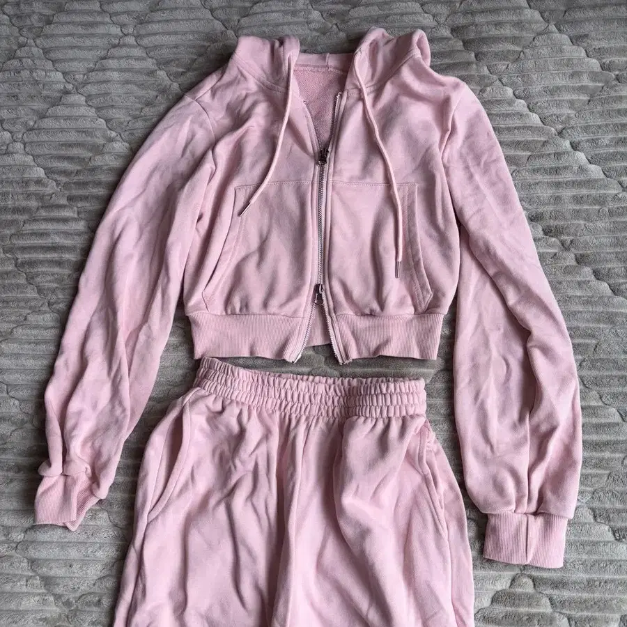 핑크 크롭 후드티 & 팬츠 셋업
