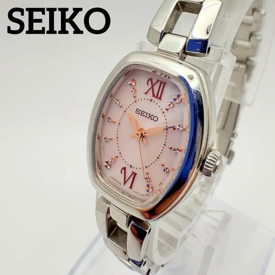 새상품급 세이코 솔라 손목시계 작동품 실버 핑크 여성용