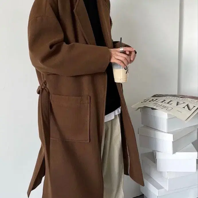 새상품급! 브라운 롱 코트 허리 벨트 포함