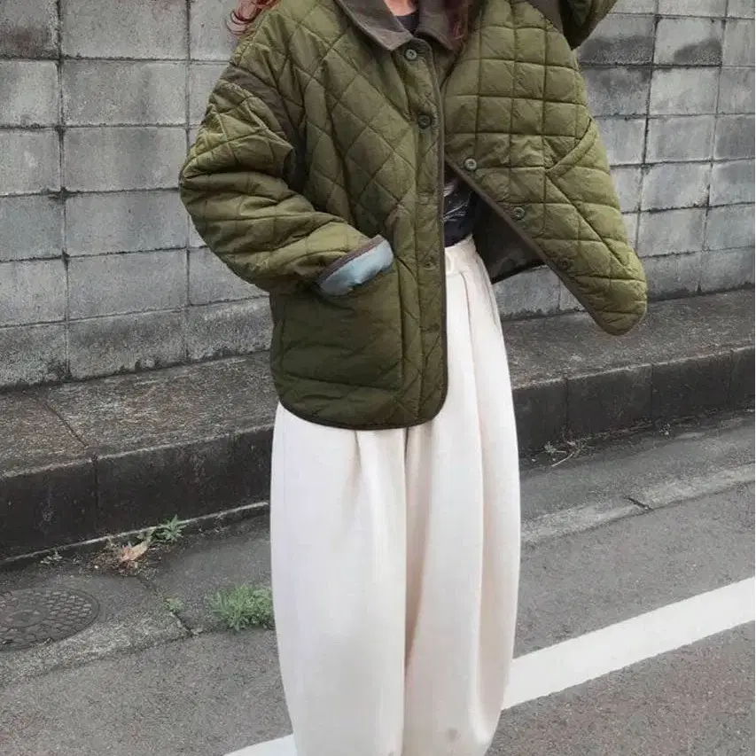 퀼팅 코트 카키