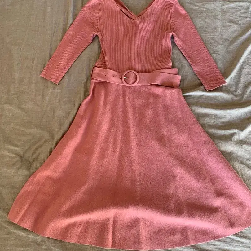 핑크 벨트 플레어 니트 원피스 데이트 원피스
