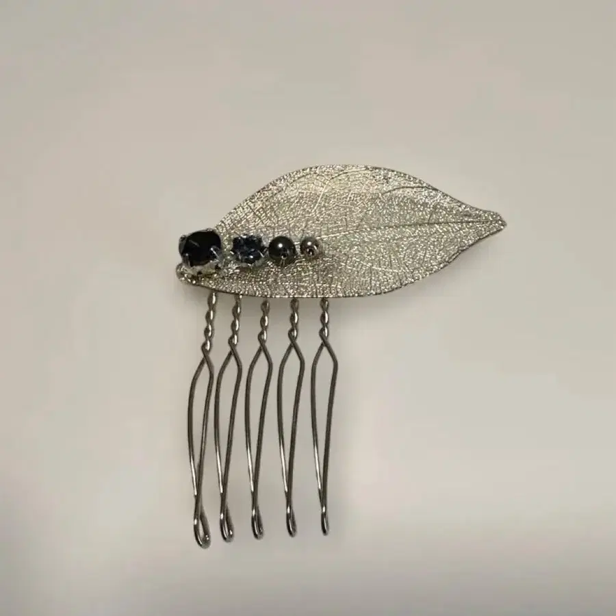 잎 디자인 헤어콤 블랙 스톤 부착