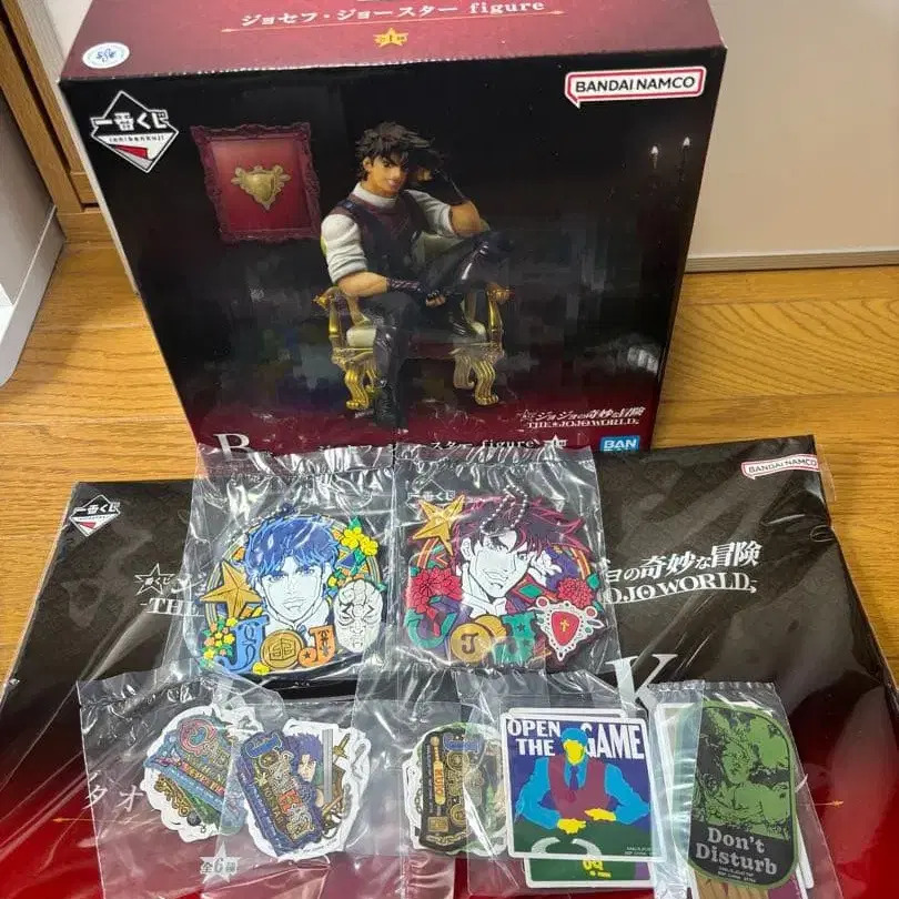 제일복권 죠죠의 기묘한 모험 -THE ★ JOJO WORLD- B상 조셉 죠스타 피규어와 J상 러버 참 2종, K상 타월 2종, L상 스티커 5종 세트입니다. 피규어는 미개봉이며 나머지는 내용물 확인만 한 미사용품입니다. 타월은 2부와 4부 패턴입니다. 피규어 상자는 눈에 띄는 흠집이나 얼룩은 없지만, 매장에 진열되어 있던 상품이므로 약간의 하자는 있을 수 있다고 생각해주세요. 현재 판매 중인 다른 상품과 묶음 배송도 가능하니 원하시면 말씀해주세요 ♪ 그 외 궁금한 점이 있으시면 부담 없이 댓글 달아주세요 ♪ 죠죠 제일복권 1번 복권 조나단 조셉 죠타로 죠스케 죠르노 죠린