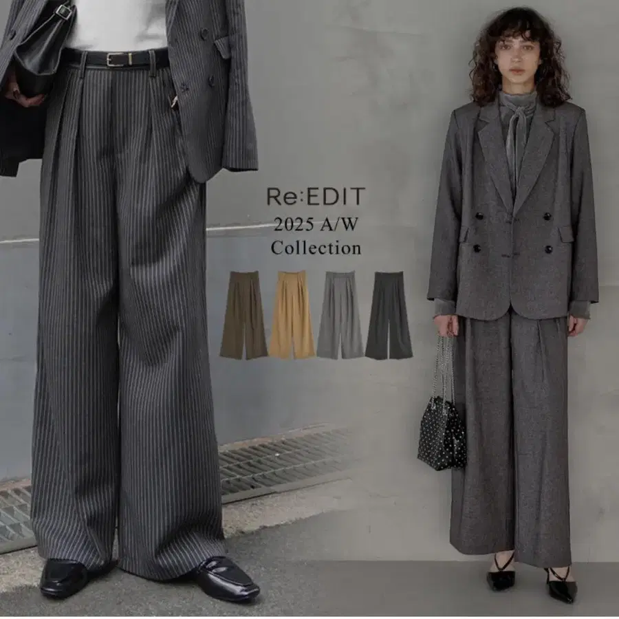 ReEDIT 트위드 블랙 더블 턱 와이드 팬츠 MT 사이즈