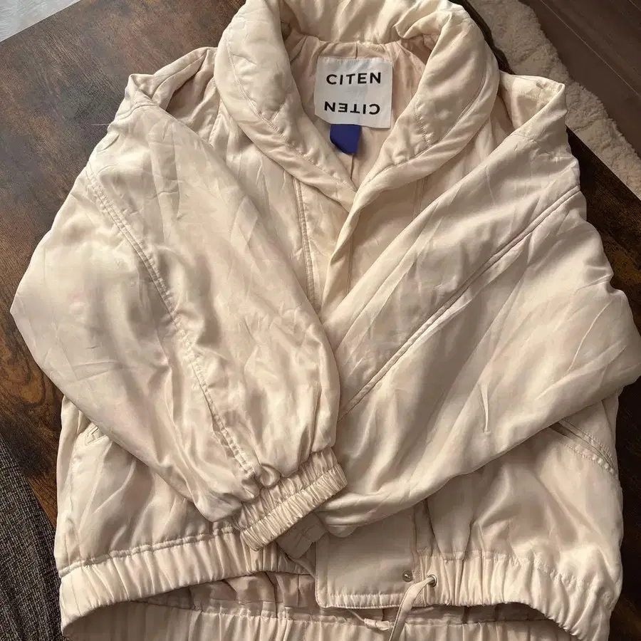 CITEN 새틴 퀼팅 숏 블루종 아이보리