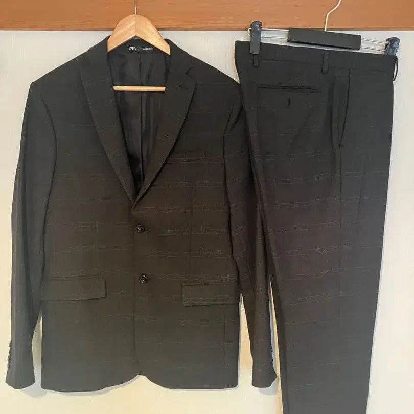 ZARA 체크 무늬 그레이 비즈니스 정장 L 사이즈