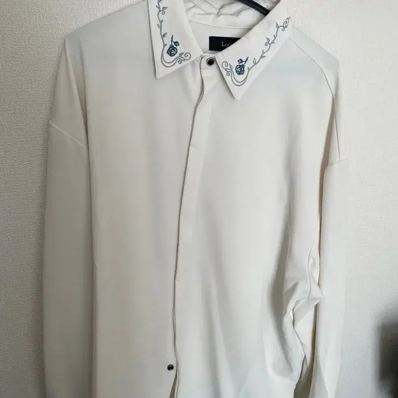Loose 드레이프 트로미 로즈 자수 셔츠 L 사이즈 화이트