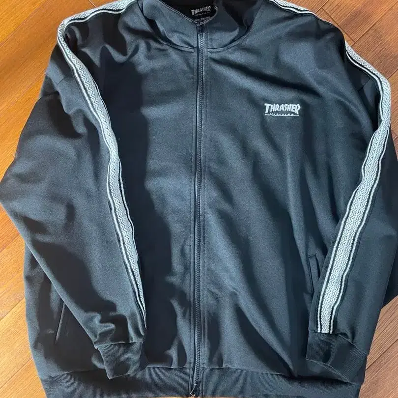 THRASHER 블랙 저지 트랙 자켓