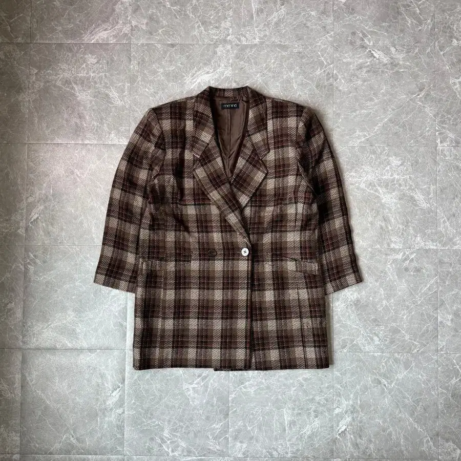 manina(마니나)의 클래시컬한 체크 무늬 자켓. 브라운 x 베이지의 차분한 배색이 성인 여성에게 딱 맞는 아이템입니다.