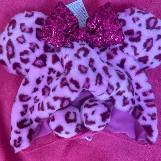 [택 포함 미사용 새상품] 미니 핑크 레오파드 무늬 팬캡 디즈니