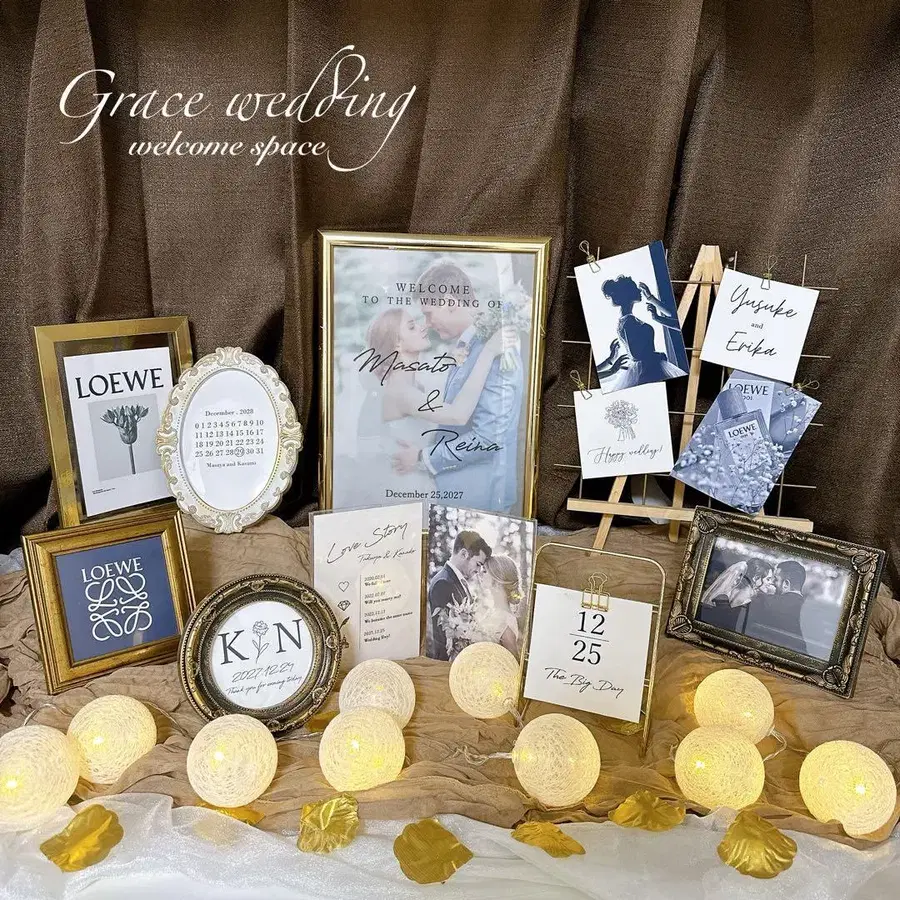 찾아주셔서 감사합니다 ✨ 웰컴 스페이스 세트 판매입니다 ‧✧ ̣̥̇ ‧ – – – – – – – – – – – – – – – – – – ❣️ 옵션 희망하시는 분 구매 절차 전에 희망하시는 옵션을 댓글란에 알려주세요( ⁎ ᵕᴗᵕ ⁎ ) – – – – – – – – – – – – – – – – – – ■ 납기 급하신 분은 구매 전 댓글란에서 상담해주세요 ■ 옵션 불필요하신 분은 즉시 구매 가능합니다 ◎ - - - 세트 내용 - - - [ ] 안은 옵션입니다. 웰컴 보드용 A4 프레임 [ 트레싱지 300엔 또는 클리어 800엔 ] ★ 커브 테두리 or 두꺼운 테두리, 랜덤으로 넣어드립니다 ★ 스스로 서지 않으므로, 필요하시다면 옵션으로 [ 이젤 200엔 ]을 구매해주세요 2면 엽서 사이즈 프레임 [ 러브 스토리 300엔 ] 이젤 포함 밀헤덴풍 [ 클립 4개 포함 ] [ 스퀘어 카드 2장 200엔 ] 클립 스탠드 [ 날짜 카드 1장 200엔 ] 원형 프레임(9cm x 9cm) [ 이니셜 카드 200엔 ] 오벌 엽서 사이즈 프레임 [ 달력 택 카드 200엔 ] [ 테이블 러너: 오간자 or 플리츠 1장 700엔/2장 세트 1,300엔 ] 사각 프레임 L 사이즈 프레임 엽서 사이즈 프레임 볼 라이트(10구/단3 건전지 2개 필요) 꽃잎 몇 장 - - - 주의 사항 - - - ■ 아래 사항은 반드시 이해하신 후 절차를 부탁드립니다. 자기소개를 읽어주세요. 가격 인하, 낱개 판매 불가 사진이나 대지, 깔개 등은 모두 샘플이므로 부속되지 않습니다. 깔개는 추가 구매 가능합니다. 미사용 새상품이지만, 구매 단계부터 약간의 흠집, 스크래치가 있을 수 있습니다. 라쿠라쿠 메루카리 택배 ↔ 유유 메루카리 택배 변경될 수 있습니다. 희망하시는 분은 구매 전 알려주세요. 결혼식 세트 판매 밀헤덴 카드 페이퍼 아이템 신부 DIY 사진 액자 촬영 소품 천 골드 화이트 브라운 내추럴 고급스러운 겨울 결혼식