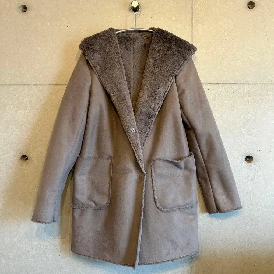 COMME CA ISM 그레이 후드 부착 무스탕 코트 7호