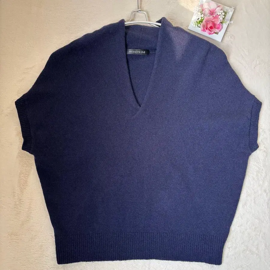 [새상품급] 미즈이로 인드 후디드 디자인 니트 베스트 네이비