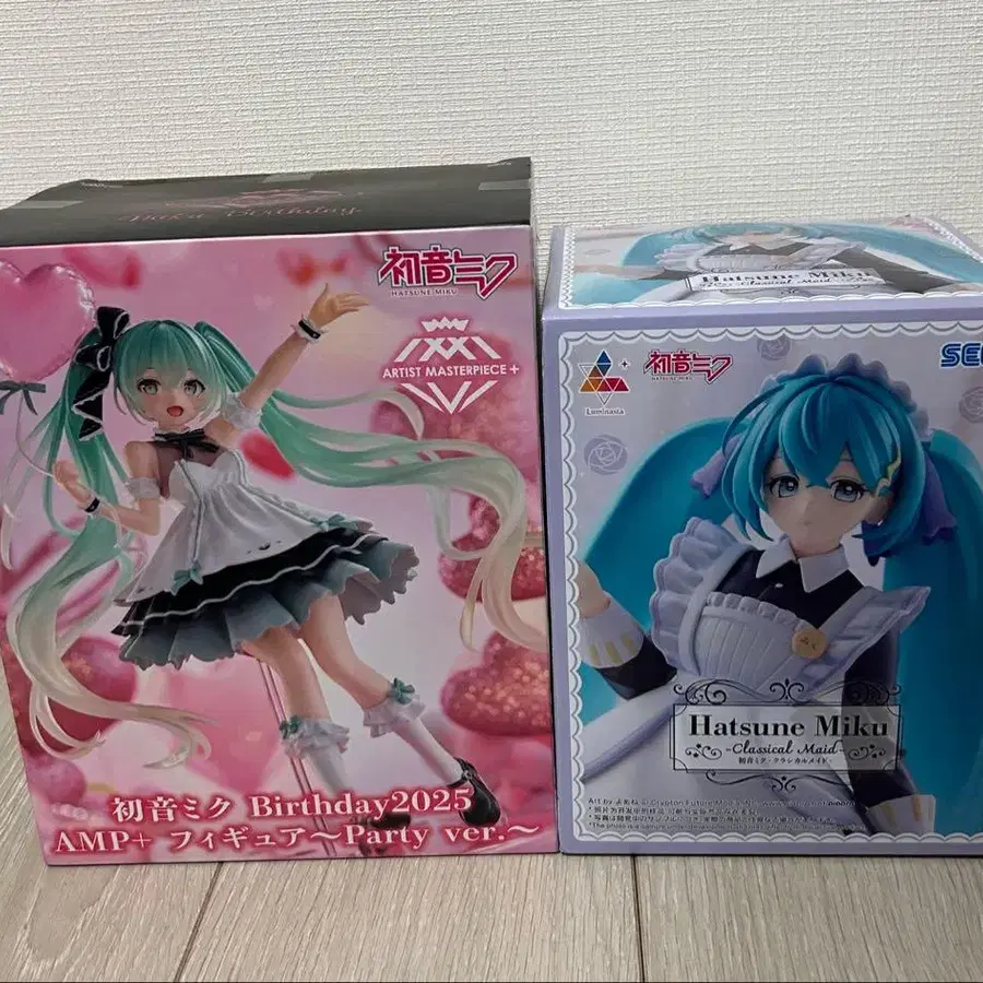 미개봉 새상품 하츠네 미쿠 피규어 2체 세트 하츠네 미쿠 시리즈 Luminasta '하츠네 미쿠' - 클래시컬 메이드 - 하츠네 미쿠 Birthday 2025 AMP+ 피규어 ~Party ver. ~ 인형뽑기 경품입니다. 획득 시 생긴 미세한 흠집 등이 신경 쓰이시는 분은 삼가해 주십시오. 에어캡으로 포장하여 침수 대책을 하여 발송할 예정입니다.