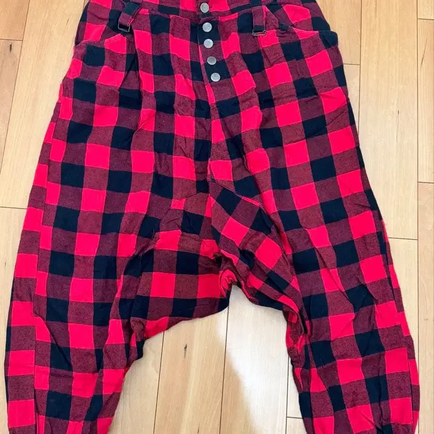 빨간색과 블랙 체크 무늬 사루엘 팬츠