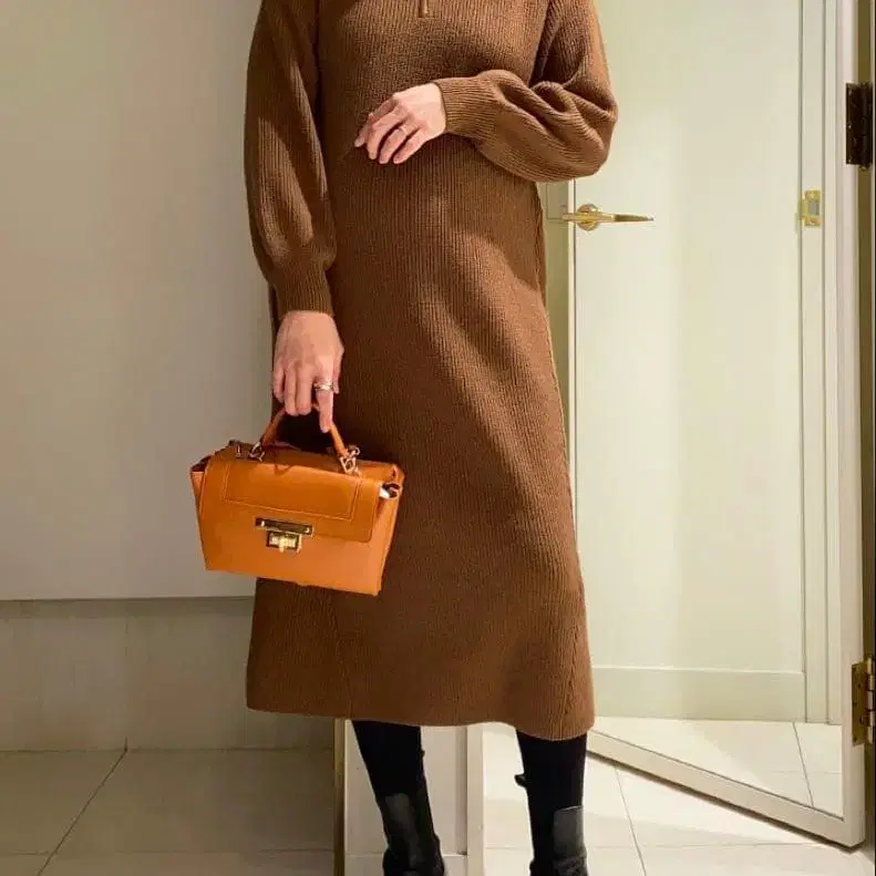 루니 브라운 니트 롱 원피스