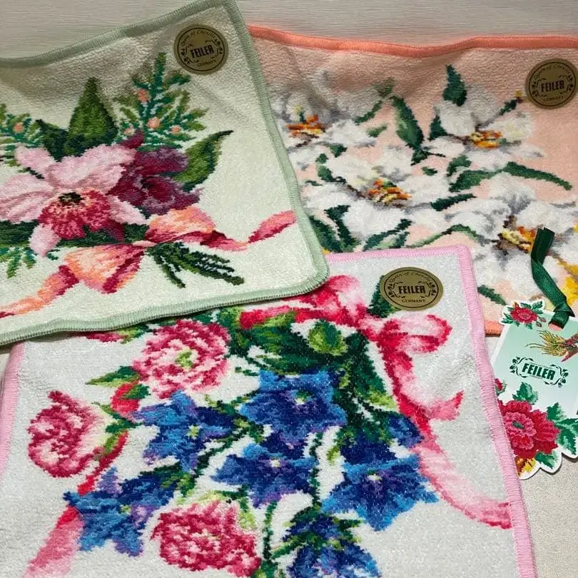 [ 미사용 새상품 ] FEILER 꽃무늬 타월 손수건 3장 세트