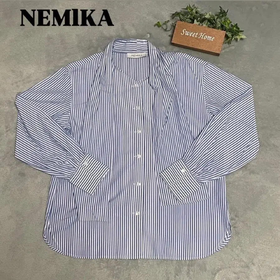 [ NEMIKA ] 네미카 스트라이프 디자인 긴팔 셔츠 화이트/파랑