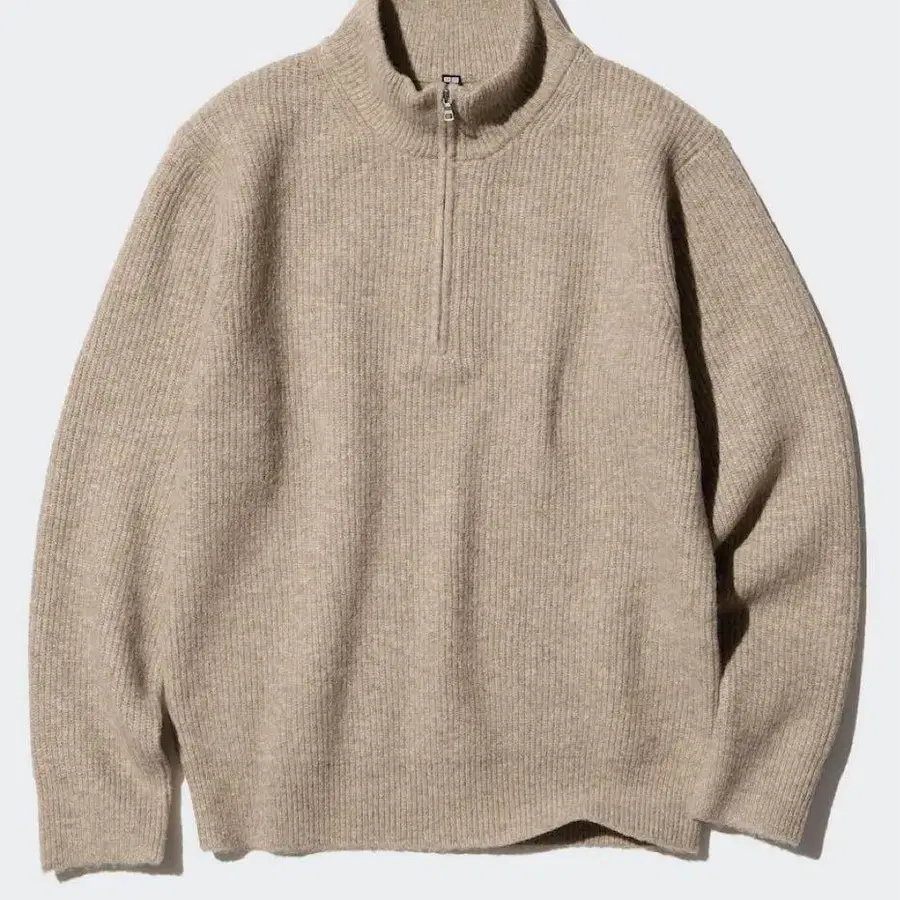 유니클로 수플레얀 하프 지퍼 스웨터 베이지 XL