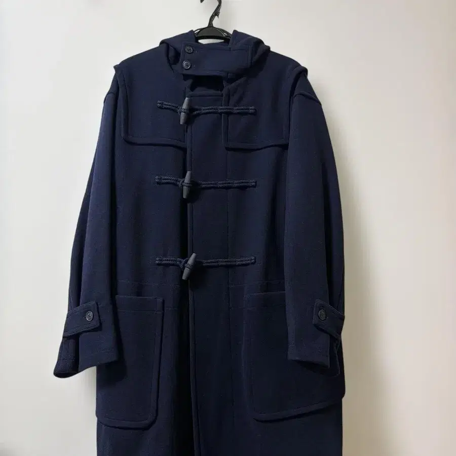 +J 후드 부착 울 오버 사이즈 더플 코트 네이비