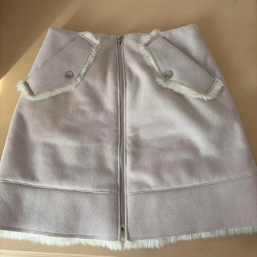 스나이델 스웨이드 퍼 포함 스커트 핑크 미사용 택 포함