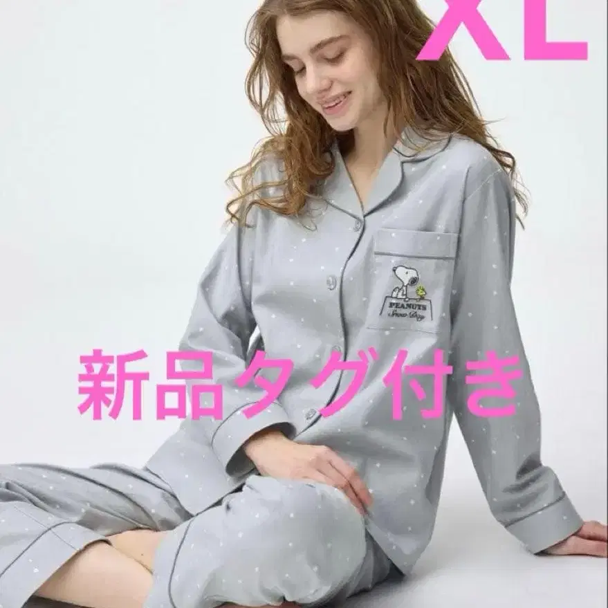 택 포함 새상품 GU 플란넬 파자마 긴팔&롱팬츠 피넛 그레이 XL