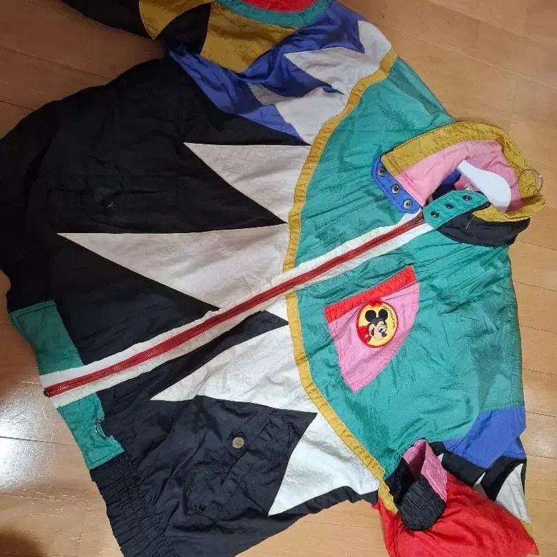 빈티지 구제 의류 컬러풀 개성 그래픽 충전솜 블루종 3XL 빅 사이즈