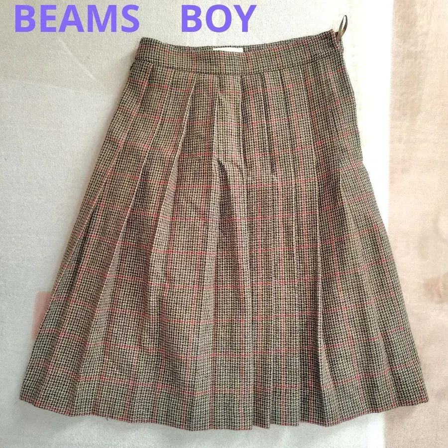 BEAMS BOY 체크 무늬 플리츠 스커트 무릎 기장