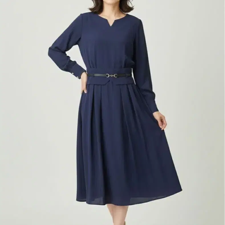 Andemiu 네이비 셋업 블라우스 x 플레어 스커트 포멀 대응