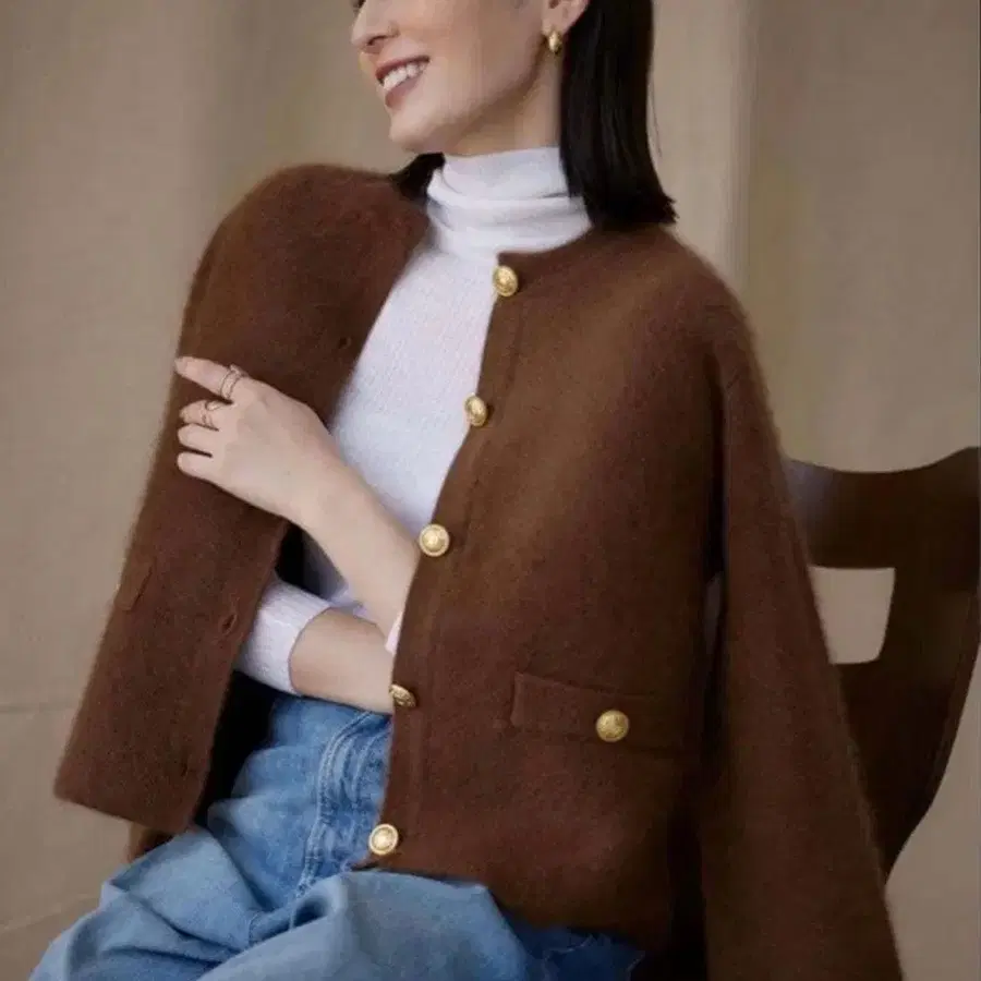 anuans 라쿤 블렌드 노카라 니트 자켓