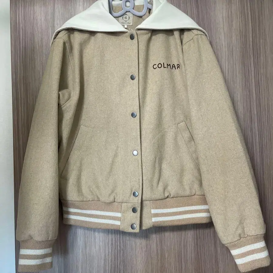 사만사 모스모스 울 혼방 세일러 카라 2WAY 자수 바시티 자켓 베이지