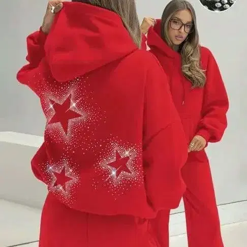 레드 후드티 별 장식
