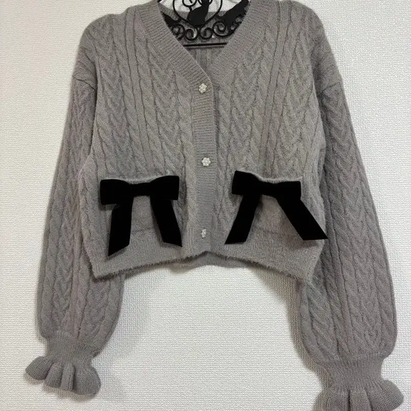 evelyn 리본 가디건 페미닌 포근걸리시 차콜