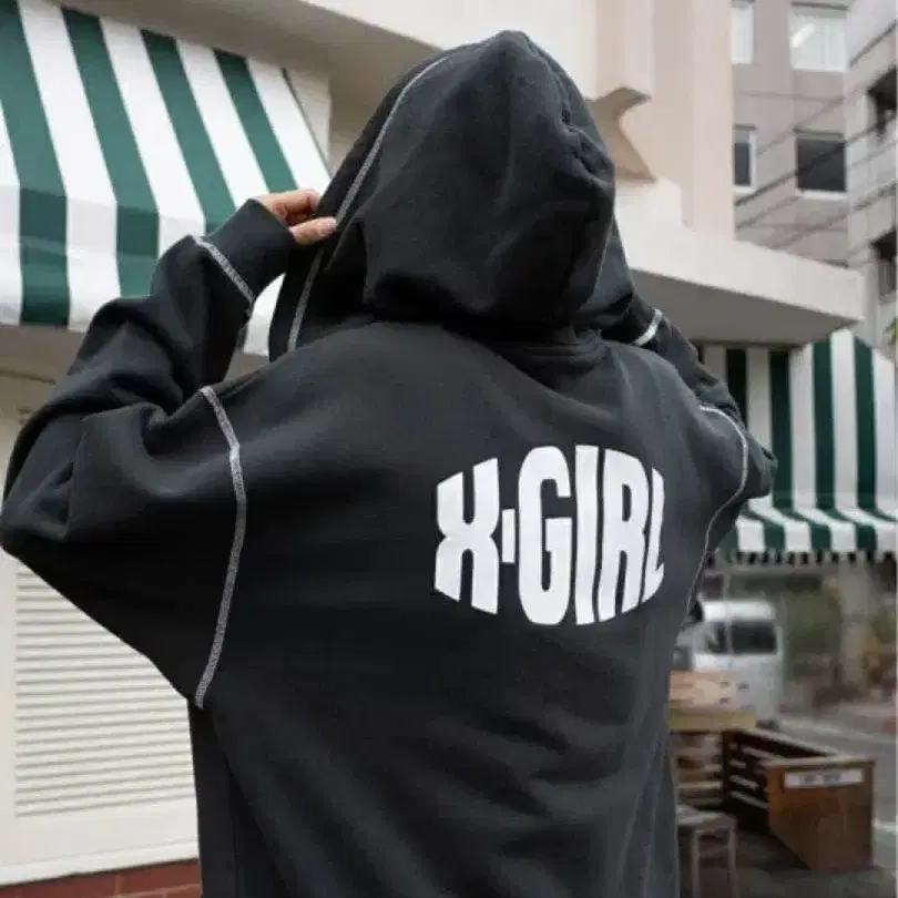 엑스걸 x-girl 차콜 그레이 집업 맨투맨 후디