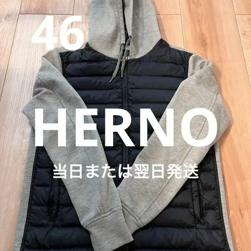 HERNO 헬노 하이브리드 후드티 라이트 그레이 x 네이비 46