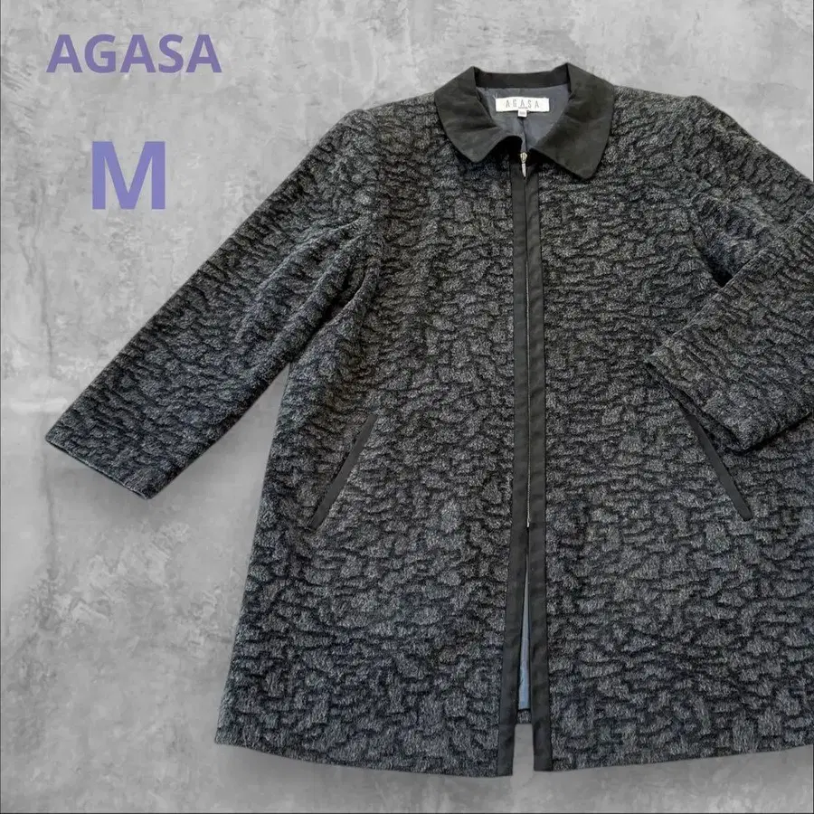 아가사 자켓 긴팔 롱 기장 집업 블랙 그레이 올 패턴 M 사이즈