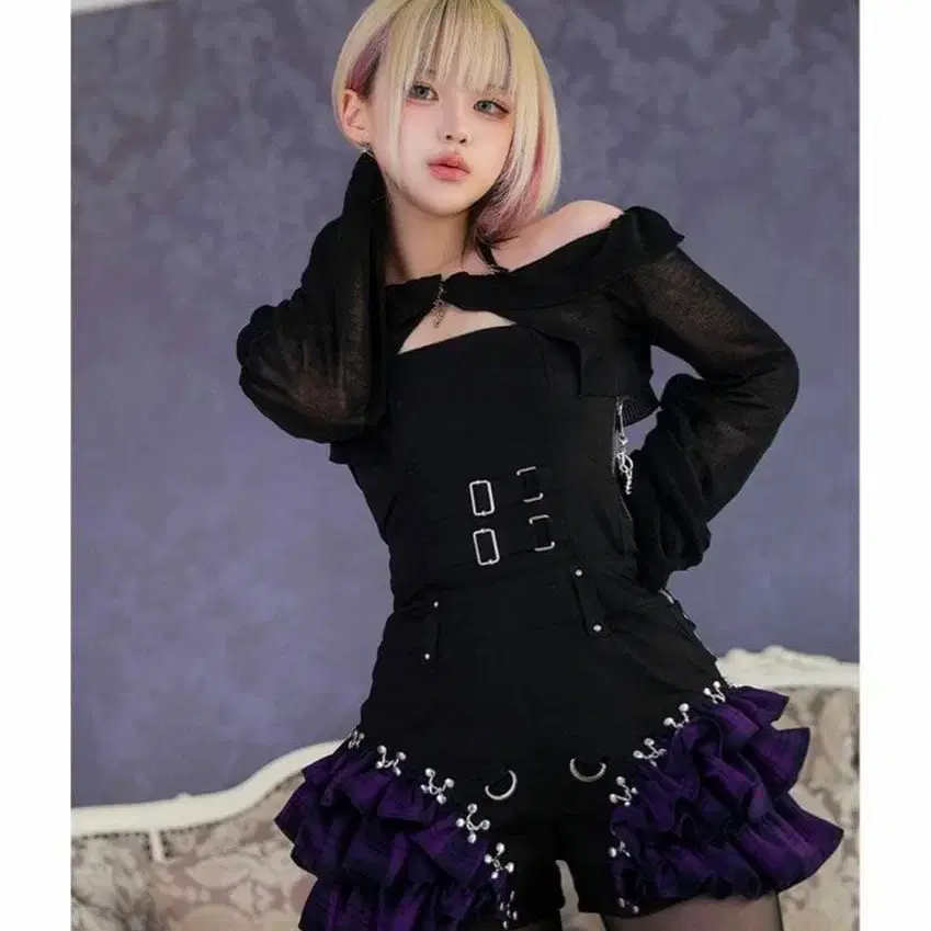 DustDevil 체크 프릴 올인원 원피스 퍼플