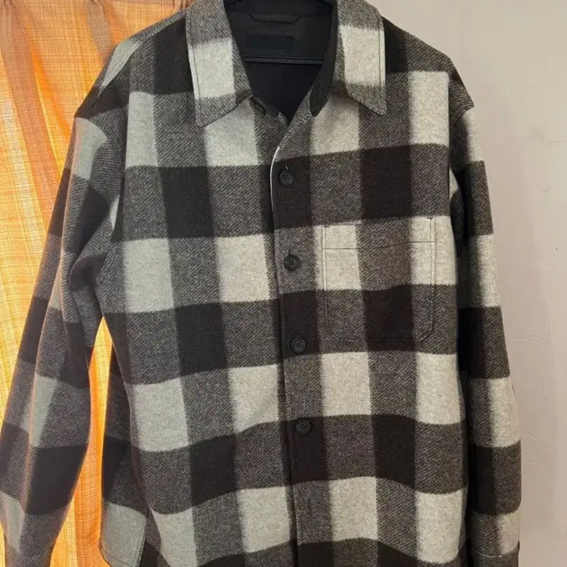 유니클로의 체크 무늬 셔츠 자켓입니다.