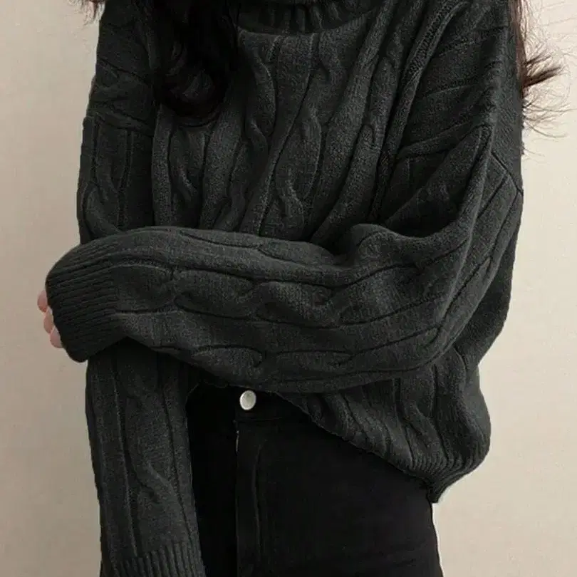 여성용 터틀넥 스웨터, 루즈핏 숏 기장, 긴팔 케이블 니트