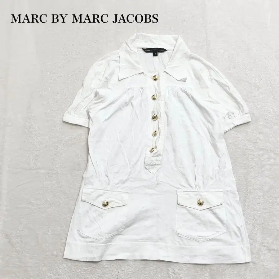 마크제이콥스 카라 부착 반팔 티셔츠 튜닉 골드 버튼 고급